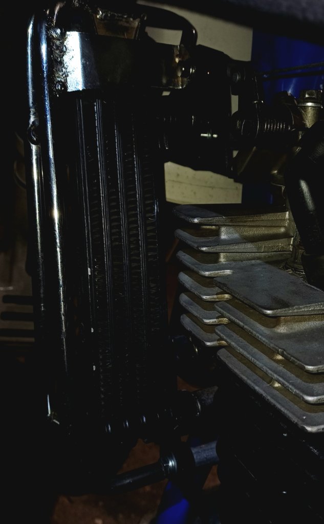 Wegen Öhlkühler:Bei der nächsten lass ich den Halter am Rahmen und setze nur den Kühler raus.