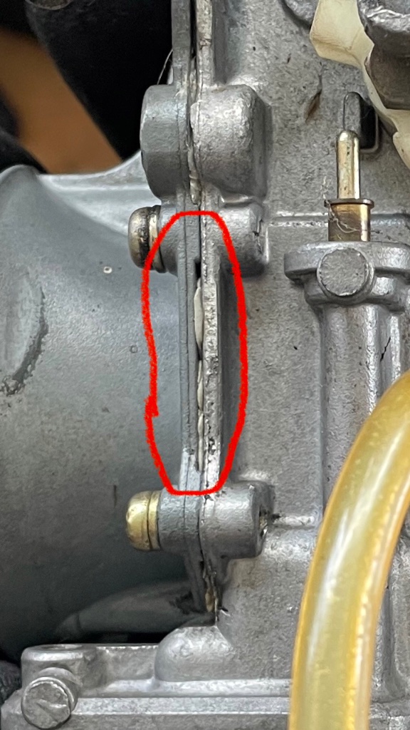 Wenn ich nach Dichtungssets suche finde ich dort meist 2 Dichtungen - einmal Schwimmerkammer und oben der Deckel. Mir scheint, als müsse es eine dritte Dichtung geben und zwar dort wo sich der Vergaser direkt vor dem Flachschieber trennen lässt. Bei der Demontage fand ich an dieser Stelle eine silikonartige graue Dichtmasse, die ich vollständig entfernt habe. Meines Wissens nach gehört so etwas nicht in einen Vergaser. Ich habe die Stelle an der es zu sehen ist auf Bildern im Anhang markiert.