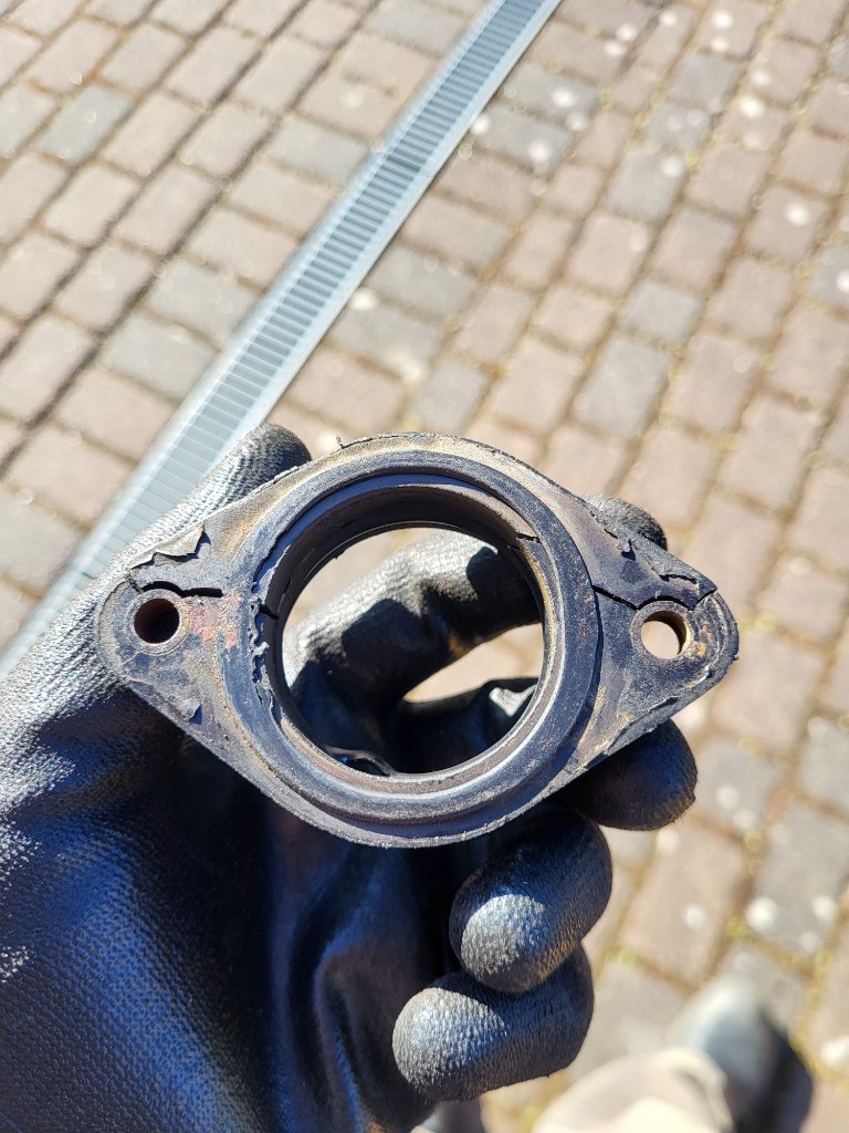 Dieser O-Ring gehört zwischen Motor und Stutzen, richtig ? Die zermatschte und zerfledderte Masse ist dann anscheinend der alte O-Ring ...