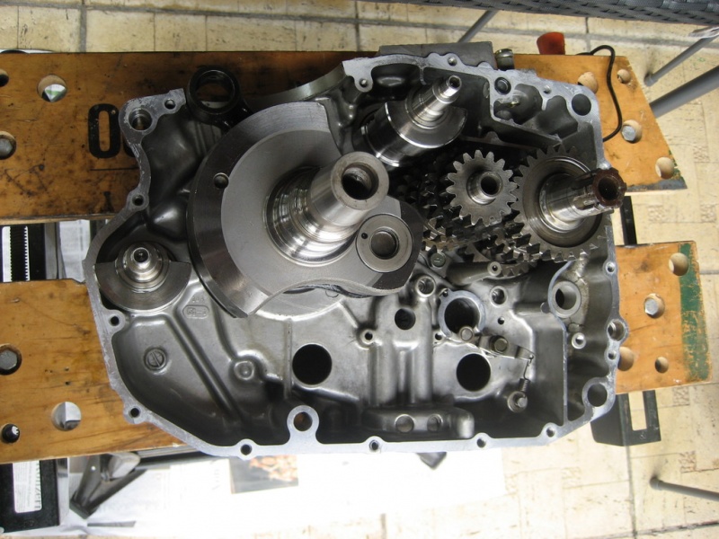 Die Motorhälften sind hier erstmal mit neuen Lagern zu sehen. Den Neutralgang-Schalter hab ich nicht abgemacht.