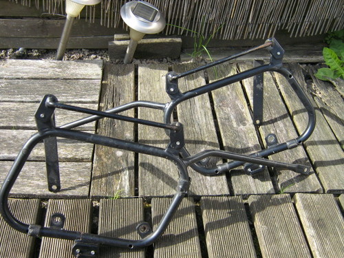 Ich lehn mich jetzt zwar ziemlich weit aus dem Fenster, aber für mich schauts so aus als wärens tatsächlich mal Givis gewesen. Die Querstrebe kam dann vermutlich später dazu, wobei die Bohrungen der Zapfen vom Monokey-System benutzt wurden. Um Alukisten aufzuschieben, etwa von Därr oder so, waren die Grundplatten dem Vorbesitzer halt anscheinend zu schmal/die Rohre zu dick...? :?