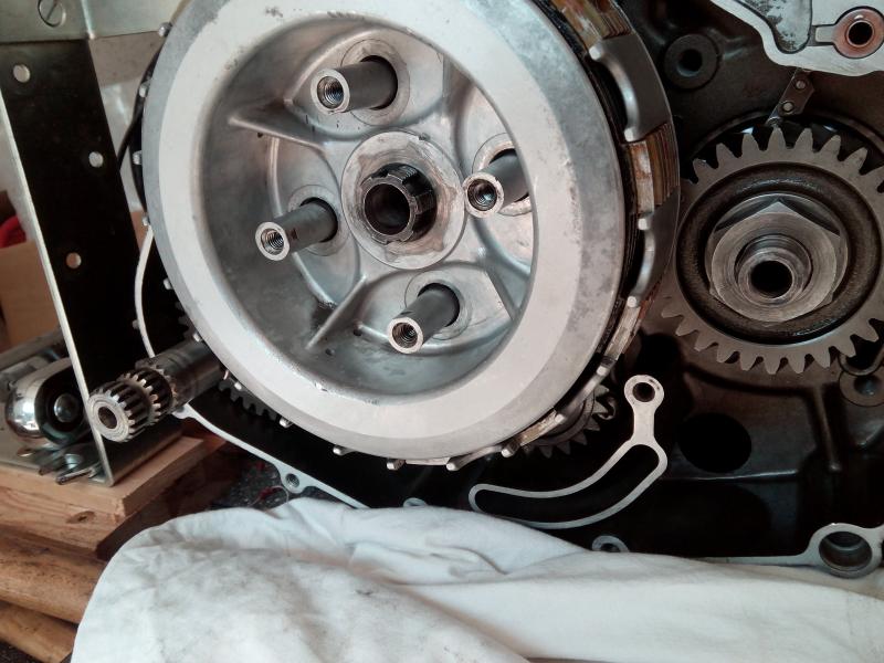 ...mit dem Kupplungskorbhalter dagegenhalten und Kupplungsmutter festziehen! Anschließend noch das Sicherungsblech hoch biegen...