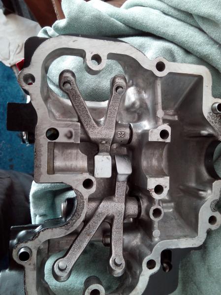 Die Auslasskipphebelwelle hat am äußeren Ende einen O-Ring zum Abdichten nach außen. Beim einsetzen des Kipphebels wieder auf die richtige Lage der Federscheibe achten...