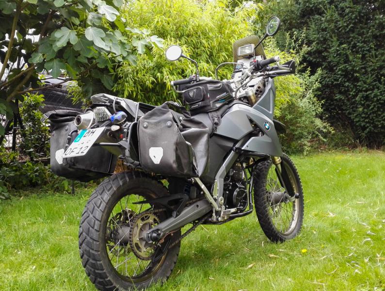 Mit dem X-Tank von Hot Rod Welding geht es so 200 km. Dann leert sich der BMW Tank. Den habe ich bisher noch nicht leergefahren, rechnerisch sollte ich dann so auf 450 - 500 km kommen. Das sollte reichen. Wie sich die Sache dann jedoch auf schlechten Strecken verhält - weiß ich nicht. Denke jedoch, es wird nicht ganz anders sein. Mit der DR habe ich im Himalaya auf 3500 und Schotter auch nicht mehr als 5 Liter verbraucht. Auf deutschen Strassen 4,5.