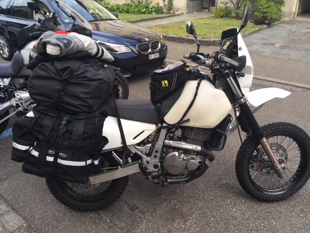 Softtaschen: Magadan von AdventureSpec - perfekt für meine Bedürfnisse. System mit Innentaschen, so kann man eine Seite mit Sachen beladen, die man nicht dauernd braucht, das kann dann am Moped bleiben (wenn es safe ist), dauert bissel, bis man sie festgezurrt hat, halten dann aber ohne zu wackeln. Ich habe zwei Sätze rokstraps verwendet.