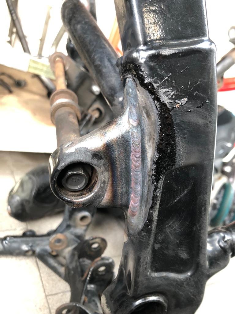 Hab die gekauft und bin gefahren. Irgendwann waren neue Schluppen fällig. Beim Einbau dachte ich so, ganz schön viel Luft, da ziehste ja die Schwinge zusammen. Hab mir erstmal die Explosionszeichnungen angeschaut, und siehe da, es fehlte eine Distanzbuchse. Und zwar die von der Bremssattelplatte. Sind ja nur so ca. 5mm,was solls.