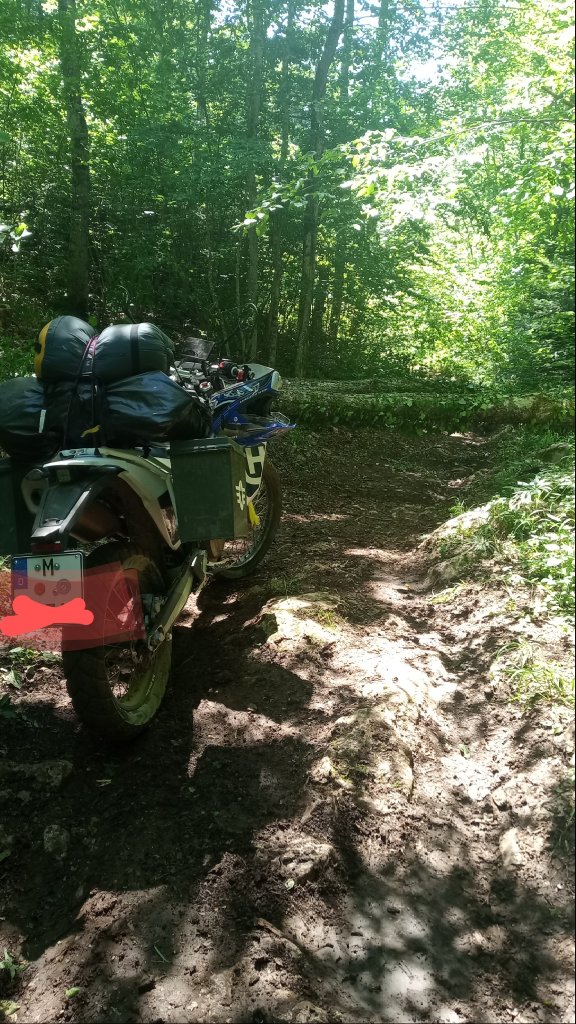 Dann sind wir die etwa.1.200 km TET bis fast Ende Bosnien gefahren. Nach 3 Wochen Dauerregen war es, als wir ankamen, trocken. Viel Kies, der Avon machte das problemlos mit. Manchmal Schranken, manchmal Verbotsschilder obwohl wir auf dem Weg der App unterwegs waren. Einige Schlammpassagen. Einmal mussten wir die Motorräder quasi um die gefällten Bäume herum tragen. Auch im Schlamm ging das mit dem Avon. Vielleicht lags an der Spezial-Tractionskontrolle von KTM für das Gelände. An meinem Können lags sicher nicht.
