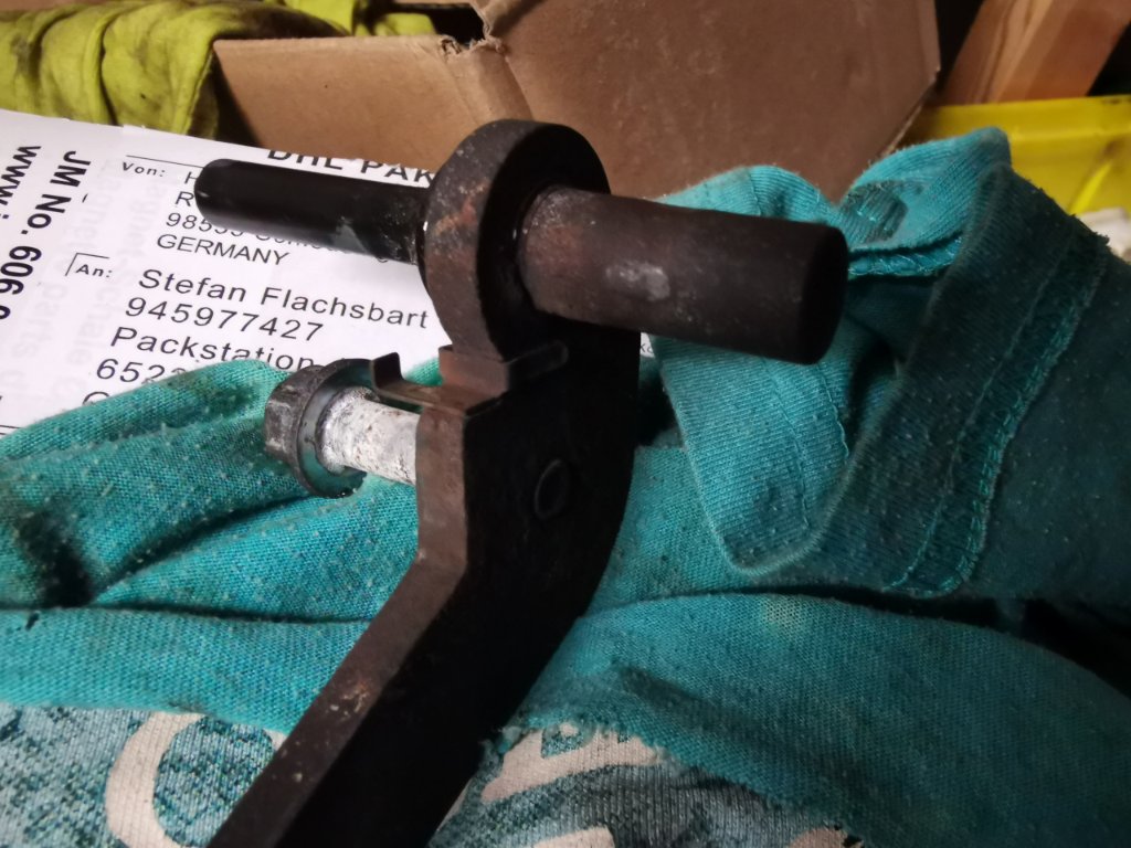 dann bist Du Dir mit dem Hans einig. Der liegt aussen, der Bolzen, nicht der Hans :wink:. Hier wird der Belag eingehängt, der runter genudelt ist, und dann nach vorne geklappt. Dieser Belag hat ein eckiges Loch zur Aufnahme. Könnte durchaus sein, das es hierdurch hakelt. Scheint mit der Platte allerdings fest verschweißt. Das heißt, aufschweißen und auf die Drehe, dürfte schwierig sein. Sag ich mal so als Laie. :mrgreen: Aber, ich bin der Dreher Eilich, was ich nicht dreh, das feil ich :D.