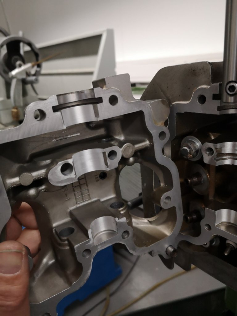 Ich melde mal erste Erfolge beim Ausspindeln des DR350-Versuchskopfes. Ob ich jetzt Schalen anfertige oder Aufschweiße weiß ich noch nicht. Beim Mittellager ist das Befestigen von Lagerschalen nicht so einfach.