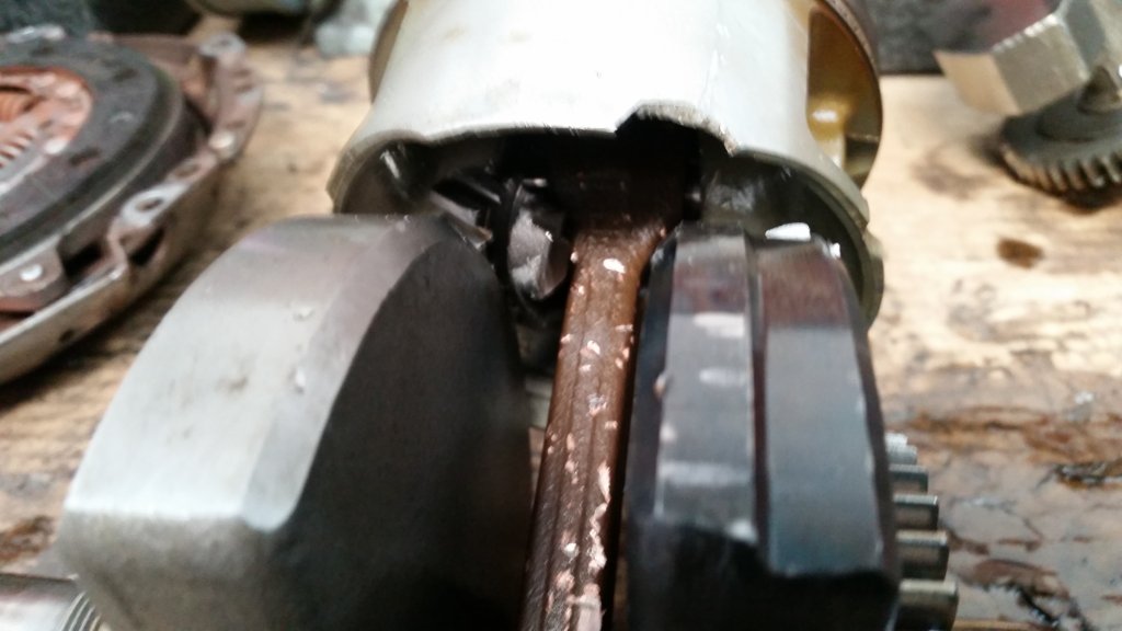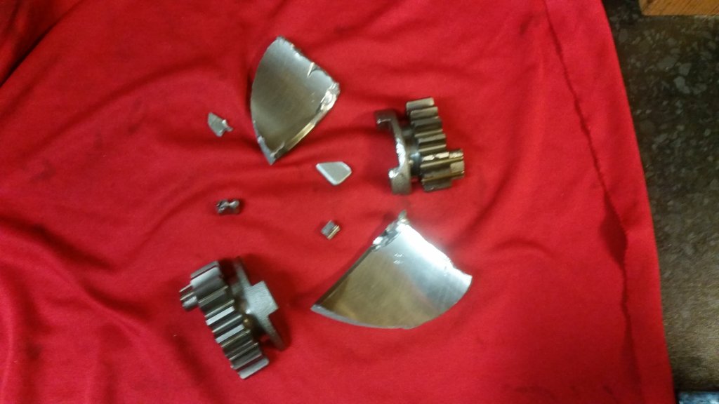 Wenn man sich die 3 Teile des Zahnrades genauer ansieht, könnte man einen Lunker vom Gießen vermuten, also Materialfehler. Aber halt nur Vermutung und nutzt auch nix.