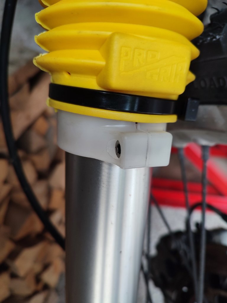 da ich meine gabel mit neuen simmerringen versehen habe....im gleichen atemzug auch tiefergelegt und wieder faltenbälge eingebaut, evtl. halten die simmi dann doch länger...zudem die sich zerbröselnden weißen plastteile an der den gleitrohren erneuert....