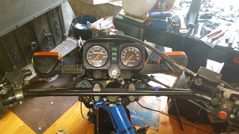 Wenn ich die Ummantelung ganz am oberen Ende (also Richtung Bremsflüssigkeitsbehälter) positioniere, scheint mir die Verlegung der Leitung um die Ecke (am Tacho runter) ziemlich auf Spannung zu sein. Schiebe ich sie weiter herunter, ragt die Leitung auf der Seite der Bremszange über das Federbein hinaus zur Seite heraus.