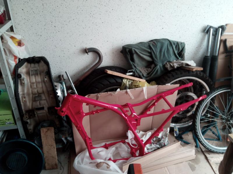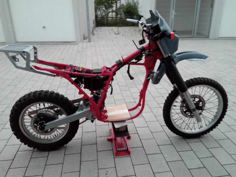Erst muß der Motor wieder zusammengefrickelt, der Rahmen und alles andere gelackt werden...