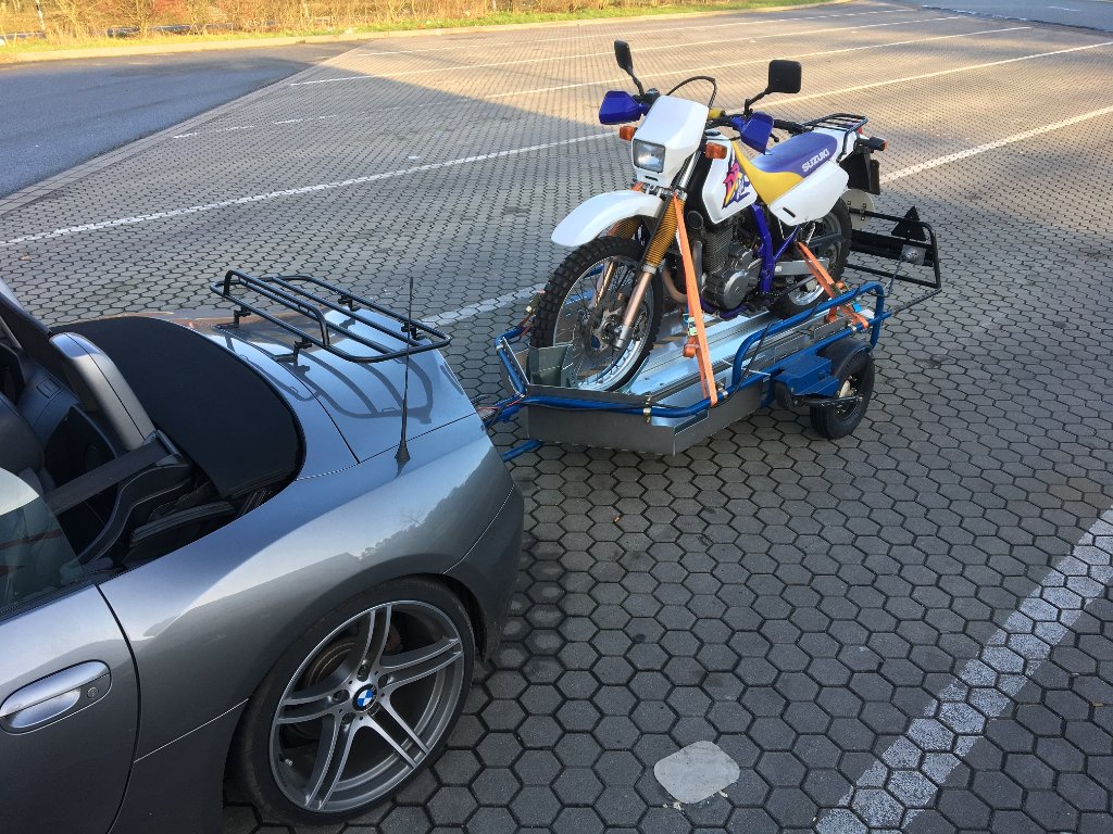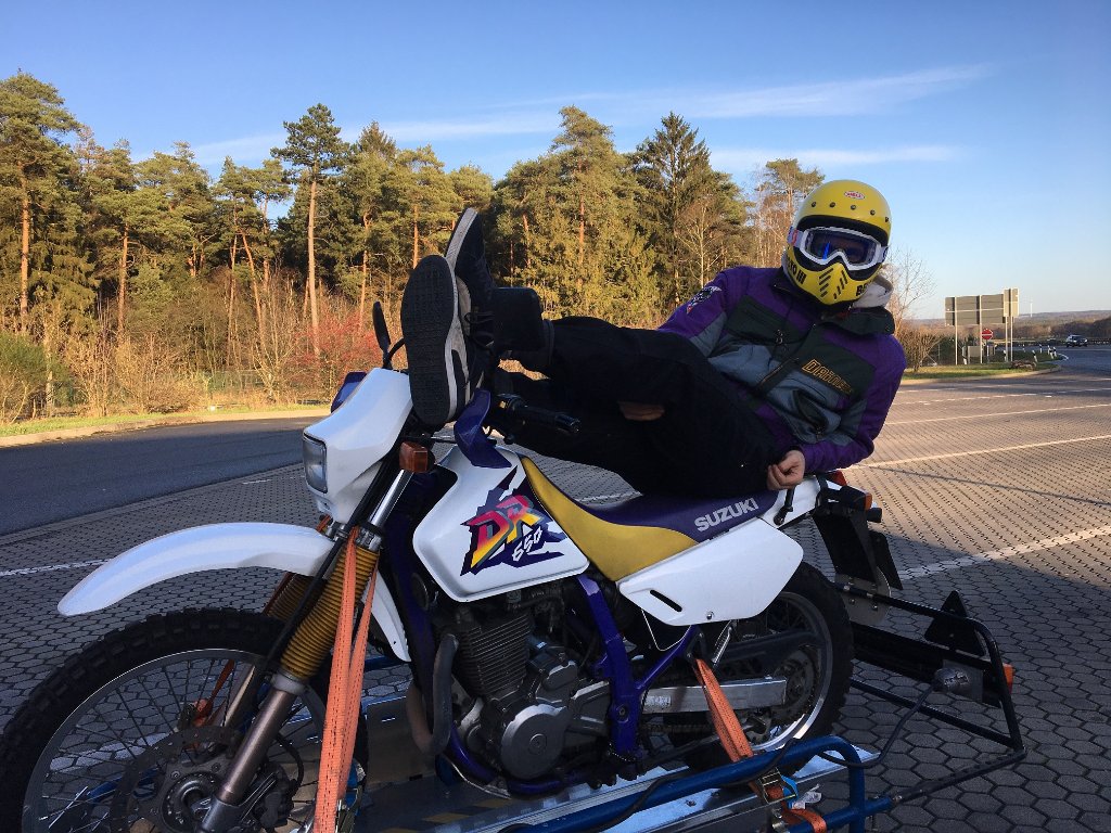 Also habe ich mir eine DR650SE mit gemachten Fahrwerk, Mikuni Vergase, Leo Tüte etc. pp. geholt. Der Vorbesitzer hat das Ding reisefertig gemacht, dann aber Nachwuchs bekommen, also kam das Motorrad weg und der Jeep ran.