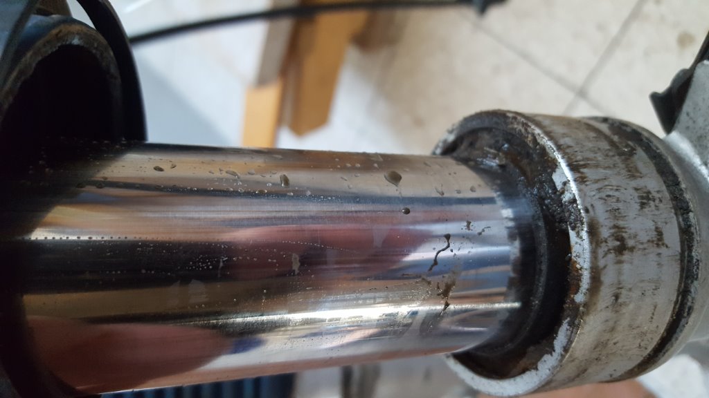 Also gleich die Gabel raus, zerlegt und das Öl sowie alle Innereien raus. Man hat das Öl gestunken, das glaubt ihr nicht