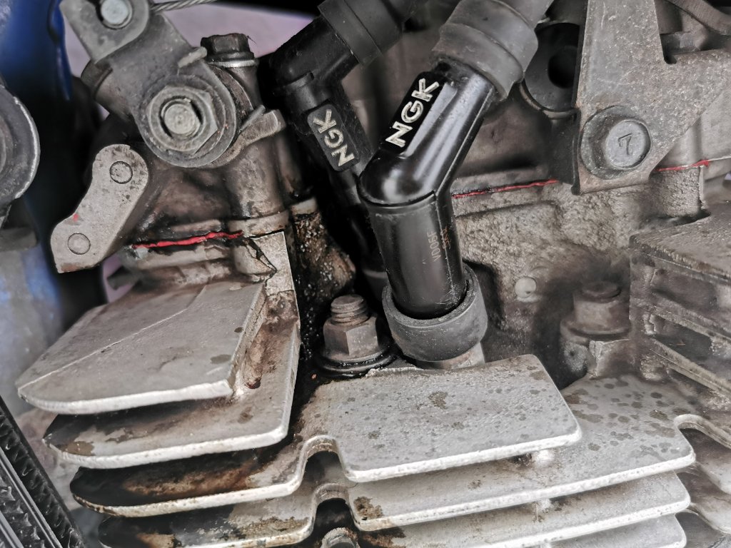 für den TÜV habe ich meiner immer schon sehr verölten DR 600 eine Motorwäsche verpasst. Nach der ersten Ausfahrt ist mir danach aufgefallen, dass sich extrem viel Öl am Stehbolzen sammelt. Es scheint als käme das Öl von der Dichtung des Zylinderkopfdeckels.