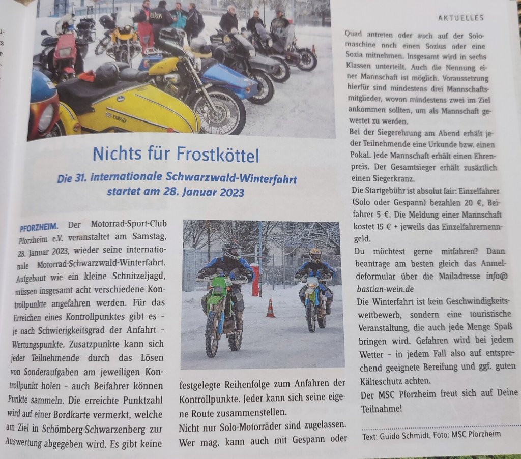 Re: 31. Schwarzwald Winterfahrt des MSC Pforzheim