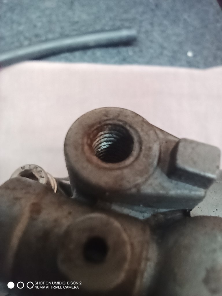 Da befindet sich an der Schwimmerkammer eine nach unten zeigende Bohrung mit einem Gewinde.